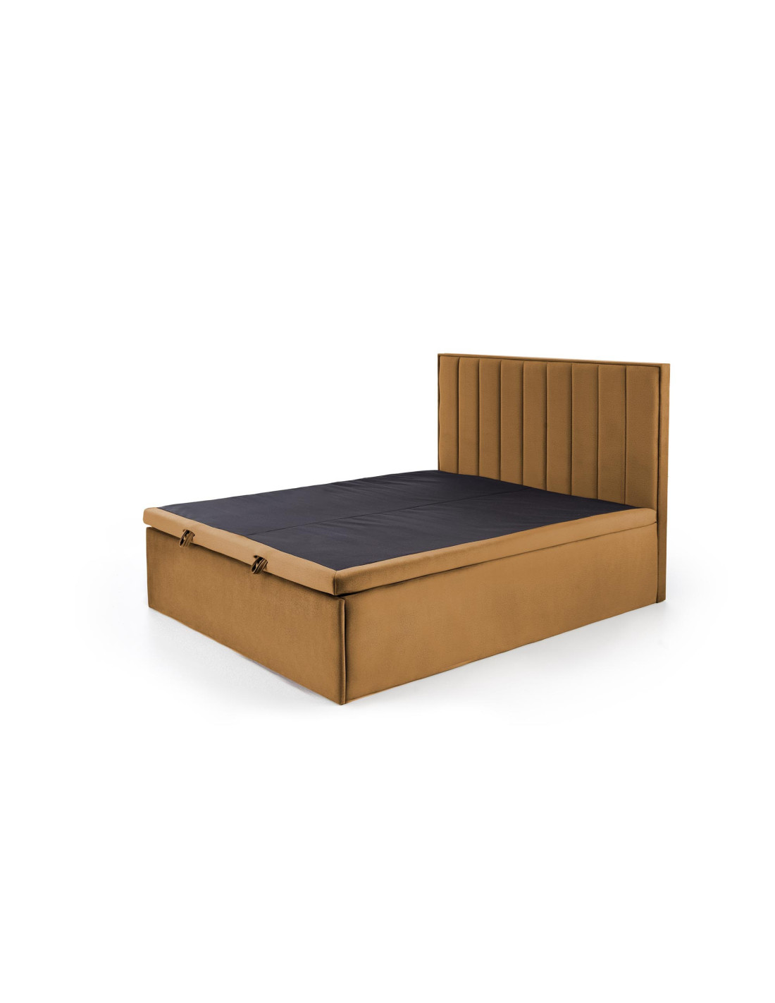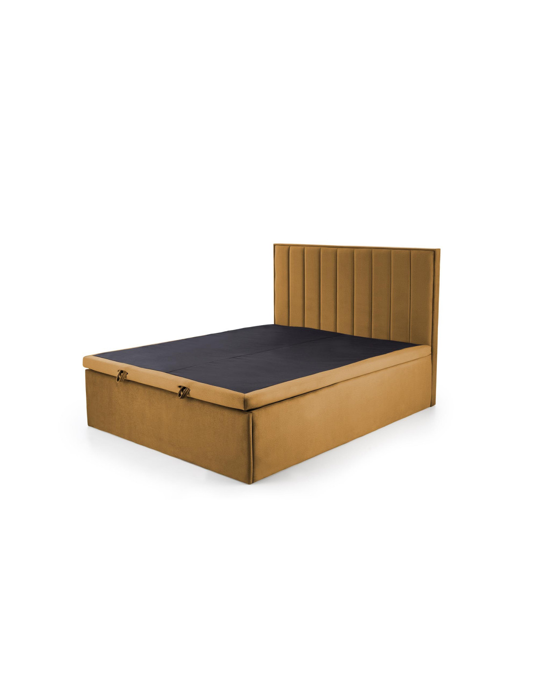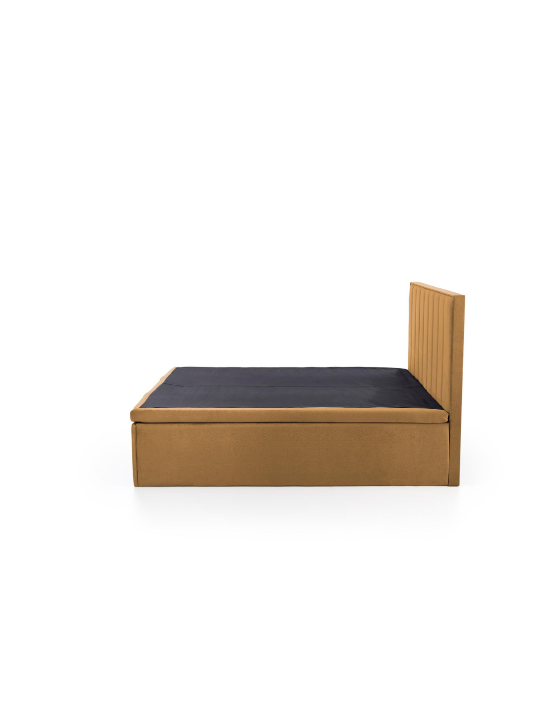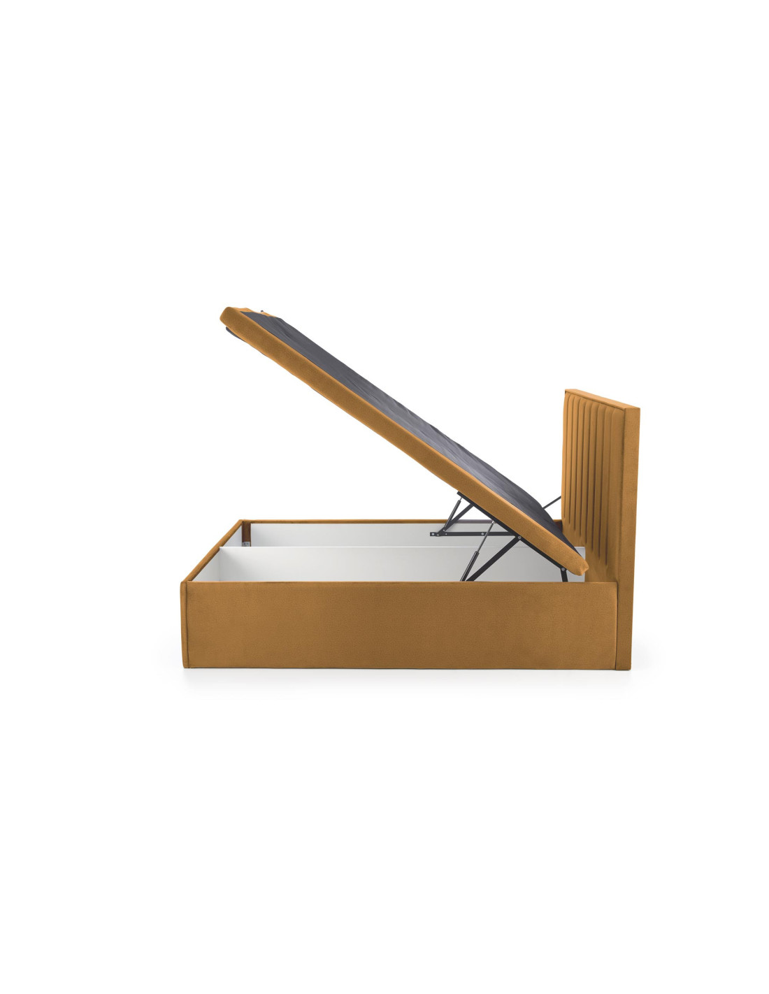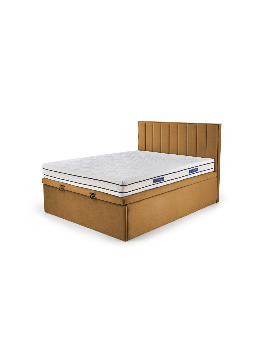 ASENTO Łóżko Kontynentalne 160x200 cm Musztardowe z Pojemnikiem na Pościel