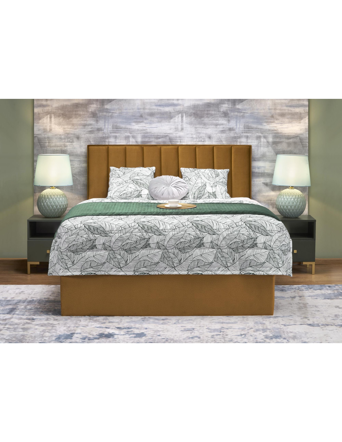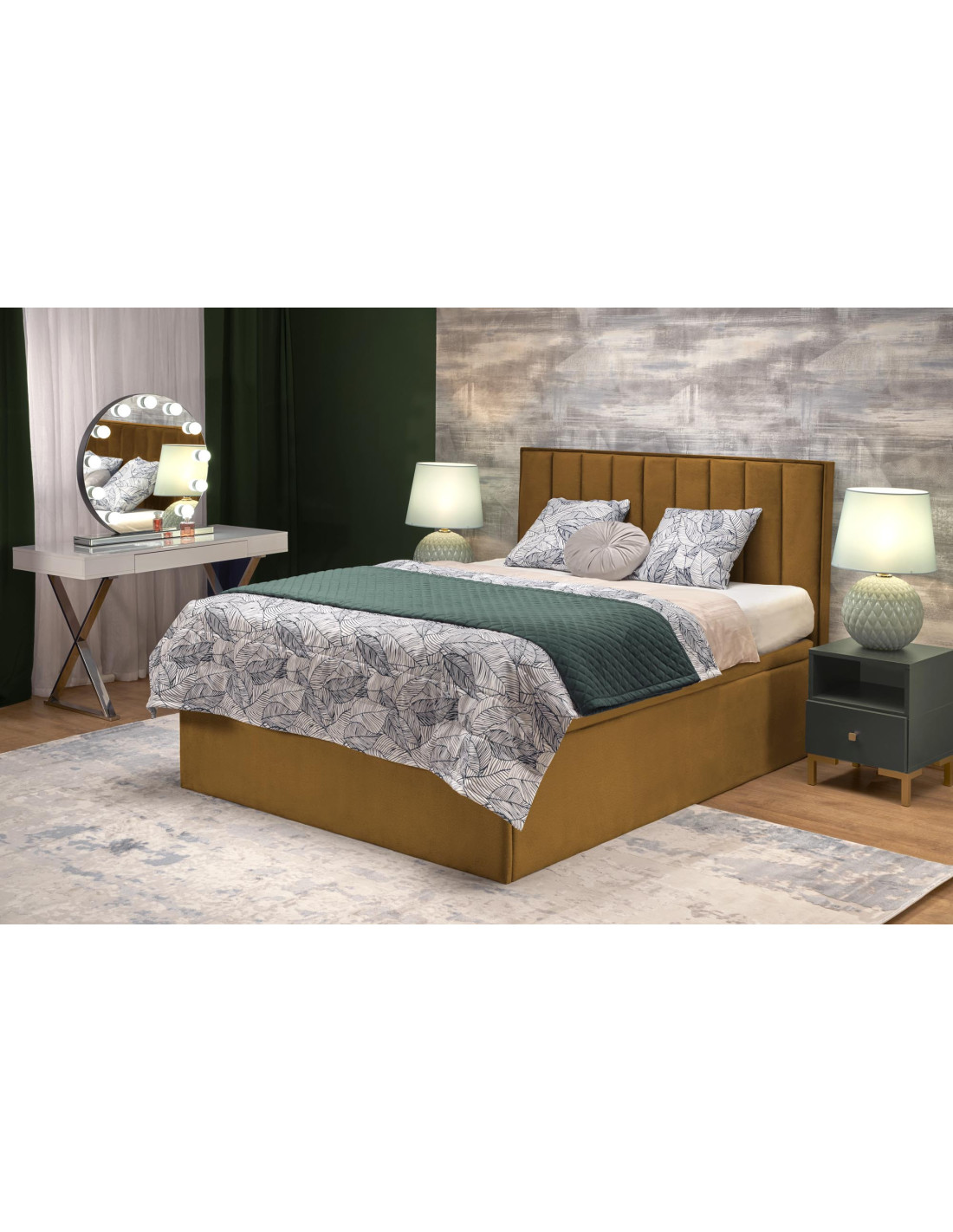 Ciesz się wyjątkowym designem z łóżkiem kontynentalnym ASENTO, które harmonijnie łączy nowoczesność z funkcjonalnością. To nie tylko mebel do spania; to prawdziwa ozdoba Twojej sypialni. Musztardowy kolor nadaje mu charakteru, a pionowe przeszycia na wezgłowiu wprowadzają subtelny akcent retro. Dzięki pojemnikowi na pościel, zyskujesz dodatkowe miejsce do przechowywania, co czyni łóżko doskonałym wyborem dla osób ceniących sobie porządek i styl.