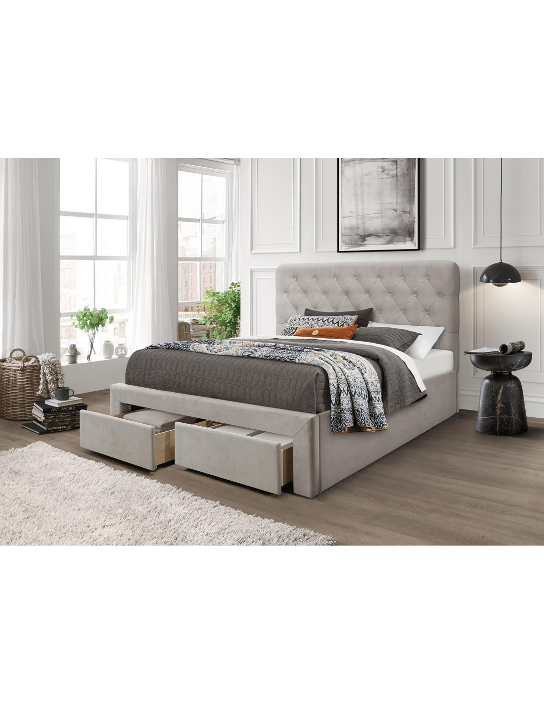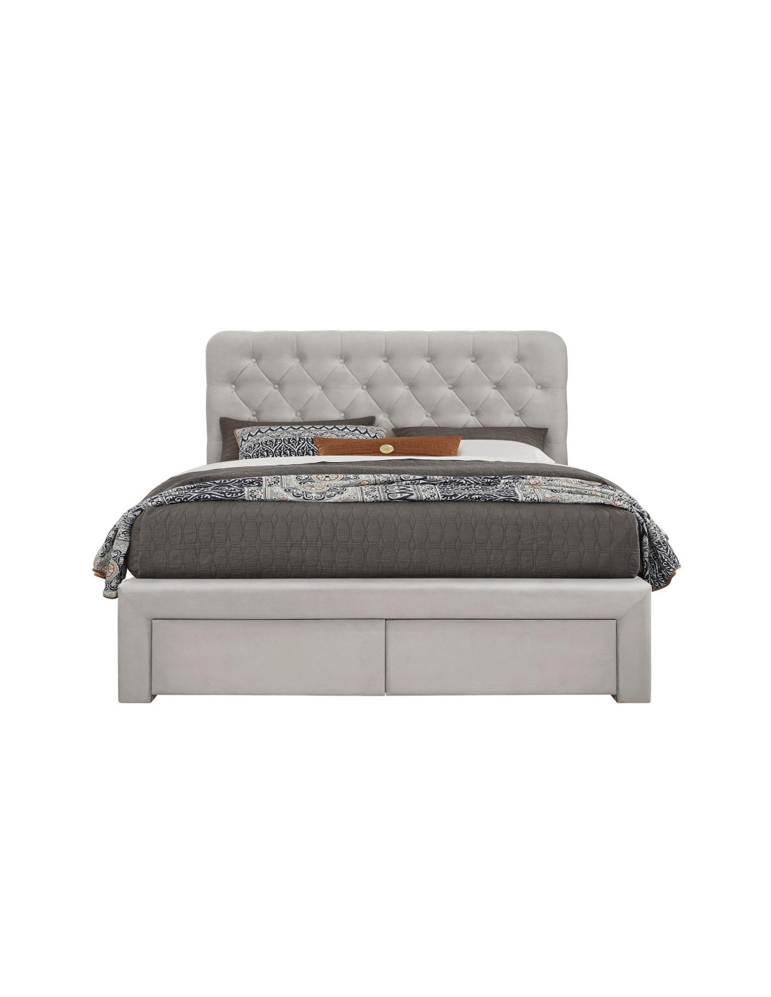 MARISOL Łóżko 160x200 cm z 2 Szufladami Velvet Beżowe | Pikowany Zagłówek