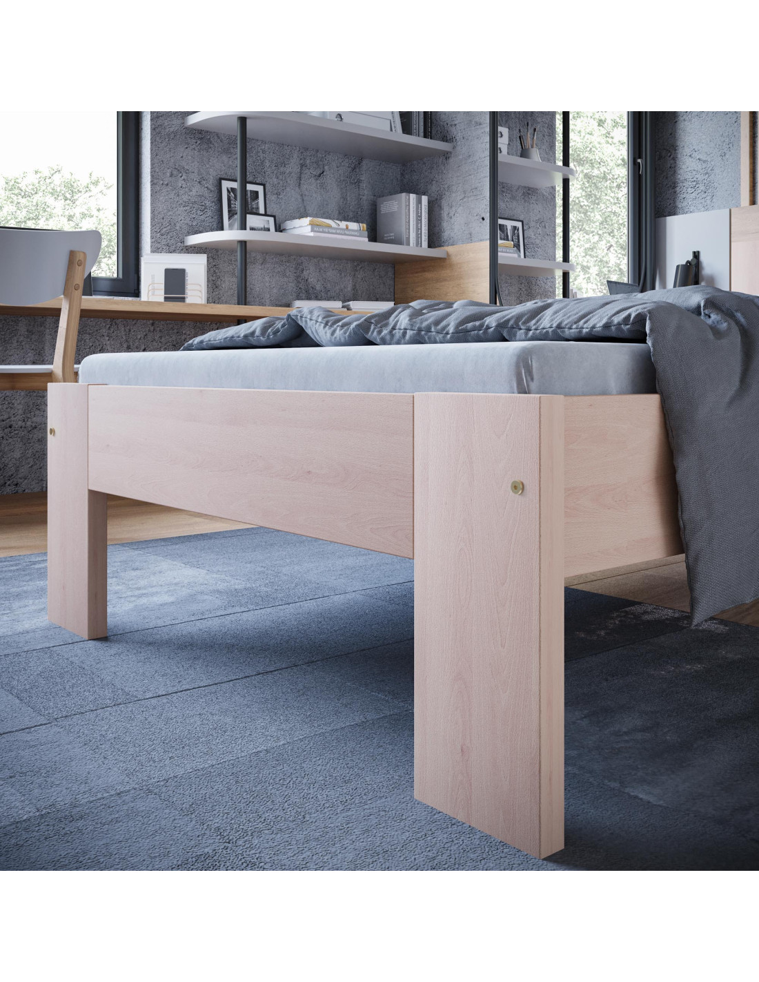 Zaprojektowane z myślą o komforcie, łóżko MATILDA zapewnia solidne wsparcie dzięki drewnianemu stelażowi pod materac. Naturalny kolor drewna bukowego sprawia, że każdy detal staje się częścią przytulnej atmosfery, zachęcając do relaksu i wypoczynku.
