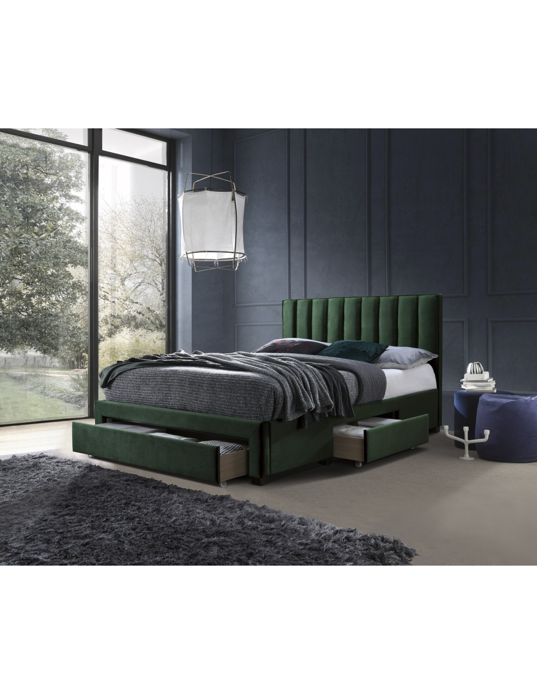 GRACE łóżko z szufladami ciemny zielony velvet (3p 1szt)