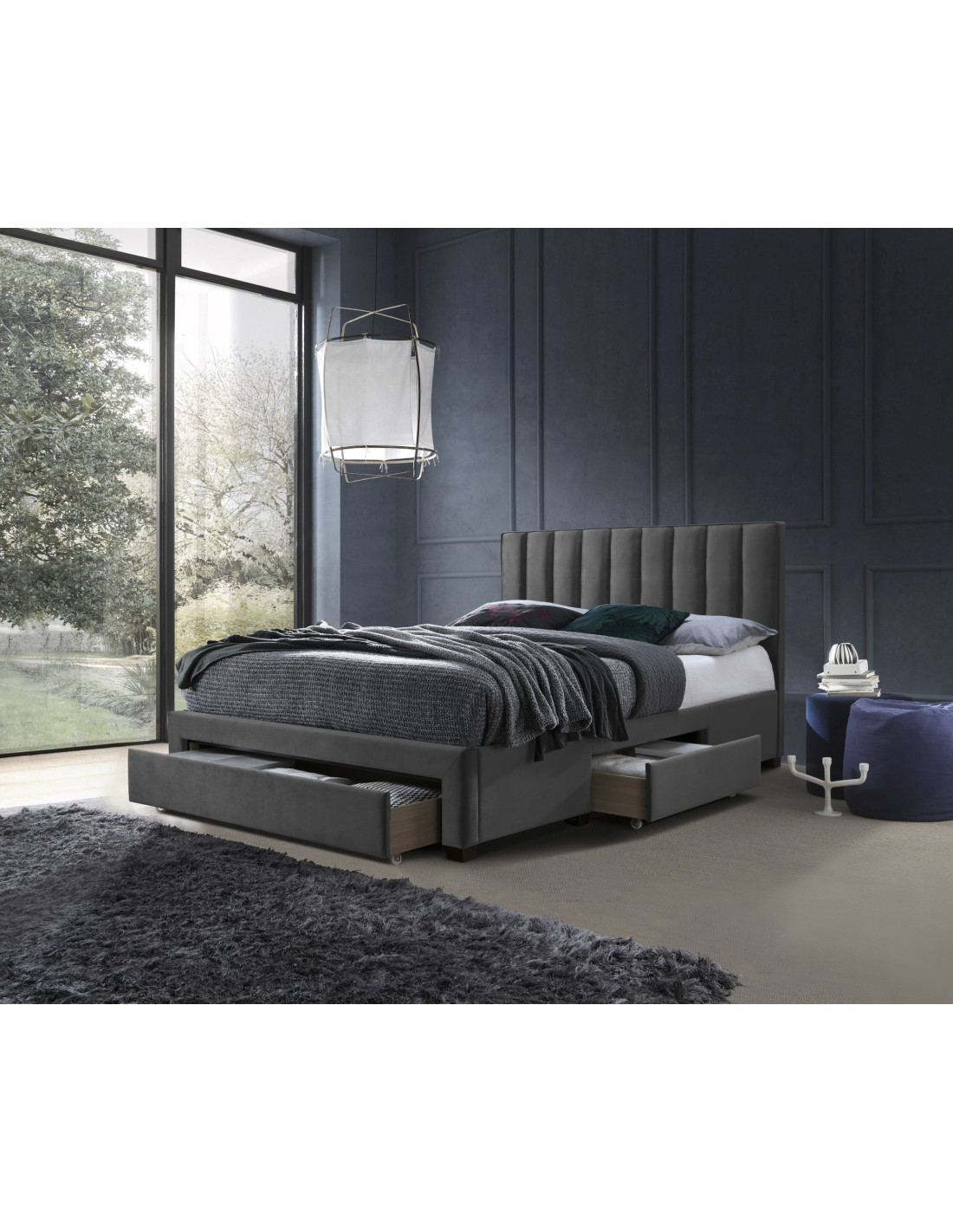 GRACE łóżko z szufladami popiel velvet (3p 1szt)