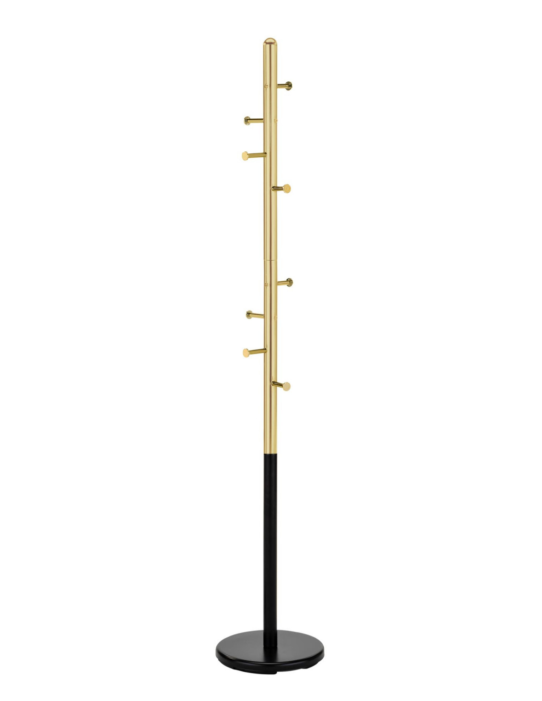 Zainspiruj się wieszakiem W68, który łączy nowoczesny design z praktycznością. Jego elegancka, cylindryczna forma w kolorze czarnym i złotym wprowadza do wnętrza wyjątkowy klimat. Wieszak o wysokości 172 cm sprawdzi się doskonale w każdym nowoczesnym pomieszczeniu, a jego różnorodne haczyki umożliwiają wygodne przechowywanie odzieży oraz dodatków.